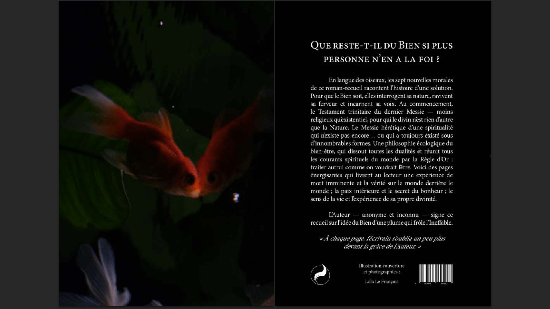 L’Auteur, anonyme et inconnu — pour ne pas dire invisible et innommable —, signe ce recueil sur l’idée du Bien, Le Livre de la Fin, d’une plume qui frôle l’Inneffable.